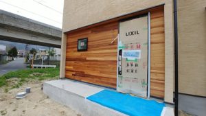 最も注目される玄関横の外壁なので、目地も丁寧にオイルを塗り込みました。
