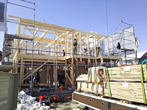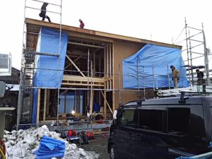 上棟日の2日前には40cm程の積雪があり、上棟前日は雪掻き作業に追われました。