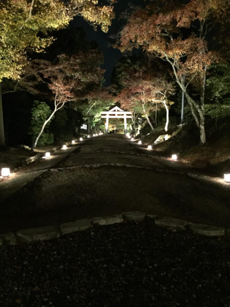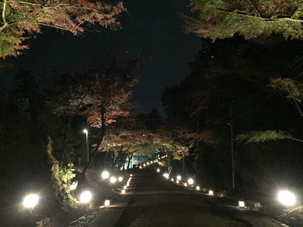 下の写真は、足元を照らしている灯篭で「大津絵」が施されています。